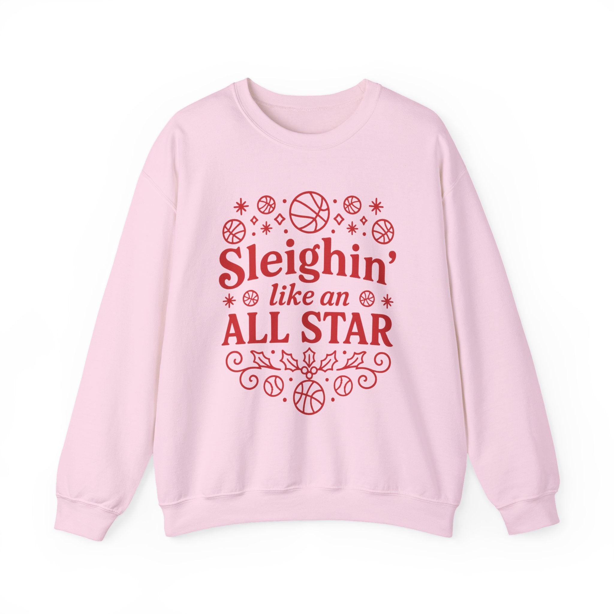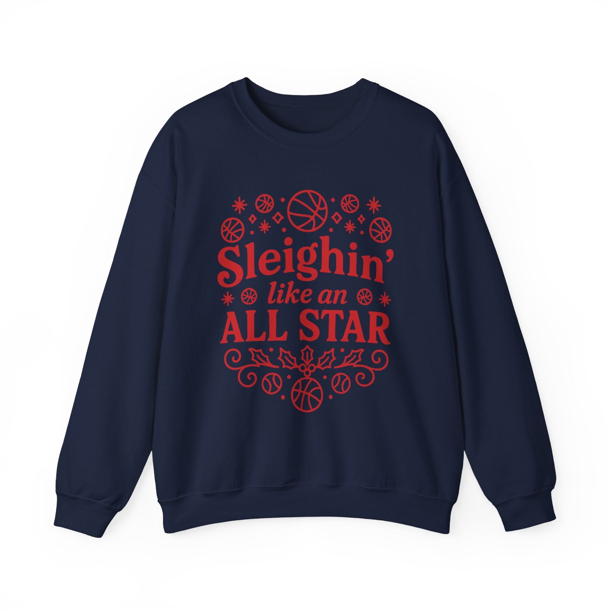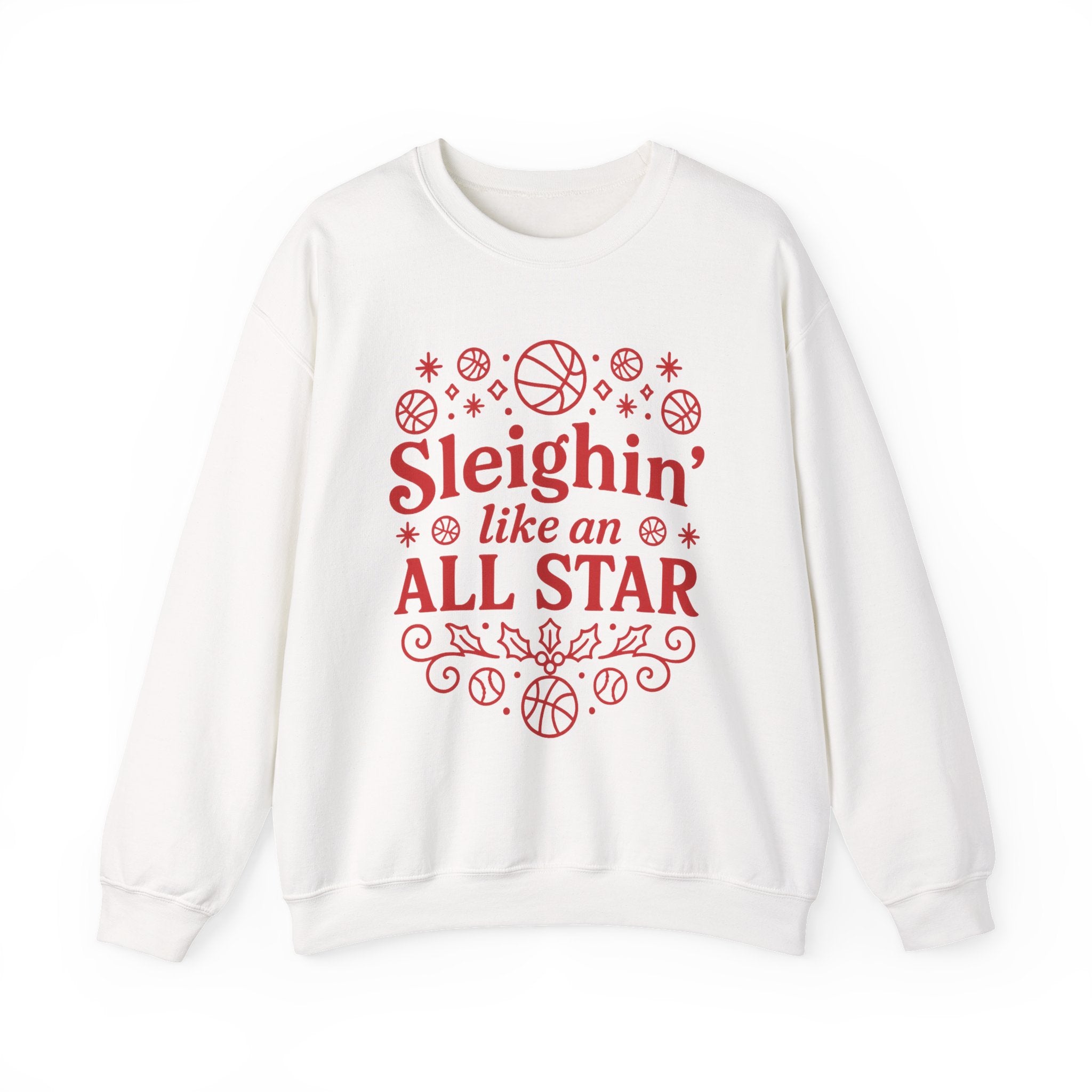 Embrace the cozy holiday spirit with this stylish Unisex Heavy Blend™ Crewneck Sweatshirt. Perfect for chilly days, it offers a warm embrace that enhances your comfort. With a playful design that reads ‘Sleighin’ like an ALL STAR,’ this sweatshirt adds a touch of festive cheer to your wardrobe. Ideal for family gatherings, office parties, or casual outings, it brings a sense of fun and relaxation to any occasion. Whether you’re hitting the holiday market or cozying up at home, this sweatshirt fits seamlessly into your winter lifestyle. It's a great gift for friends and family who love a blend of comfort and style during the festive season and cold winter months.