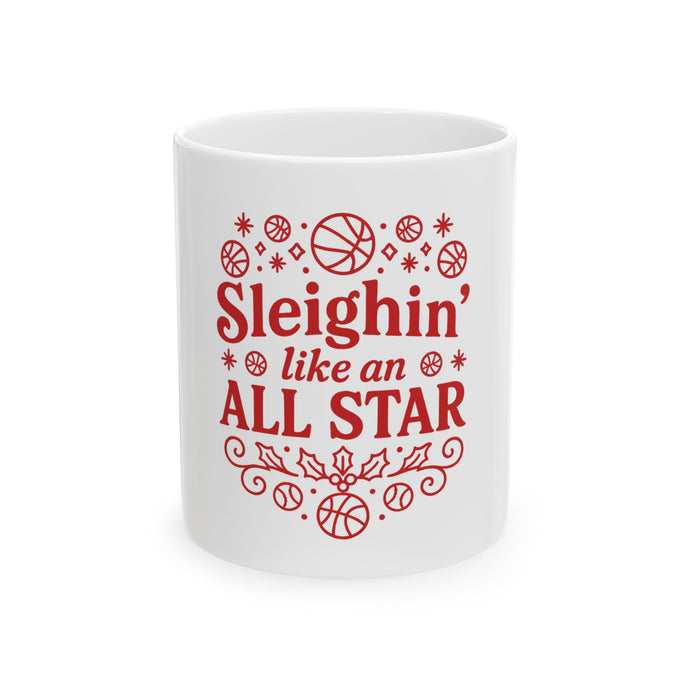 "Sleighin' Like an All Star" White Mug — Holiday Coffee Cup (11oz/15oz)