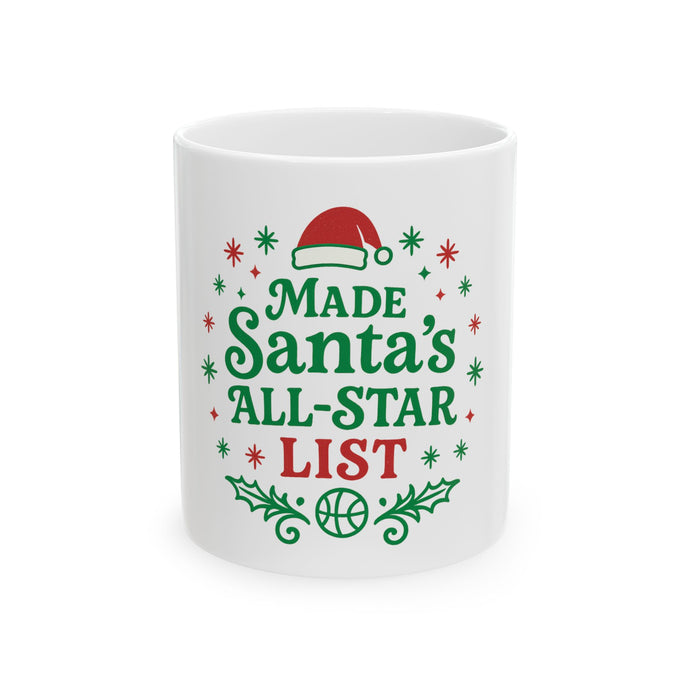 "Made Santa’s All-Star List" Christmas Mug — Funny Holiday Coffee Cup (11oz/15oz)