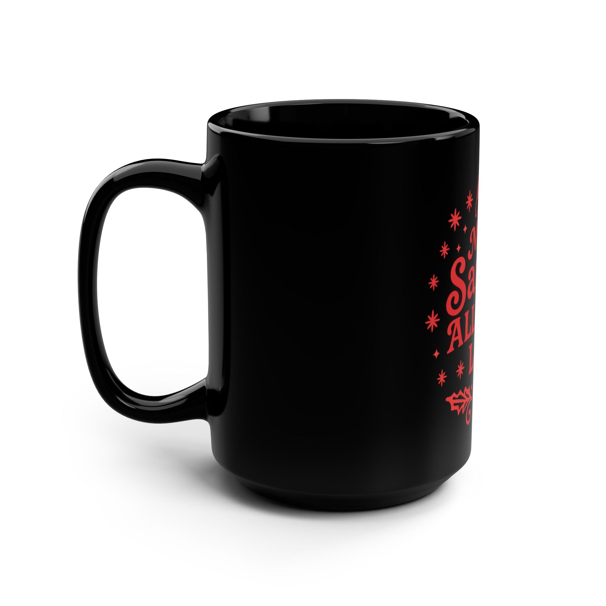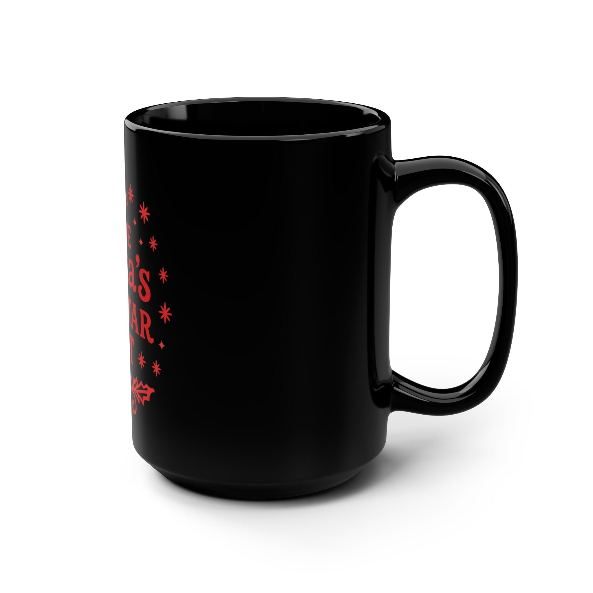 "Made Santa's All-Star List" Black 15oz Mug — Funny Christmas Holiday Coffee Cup